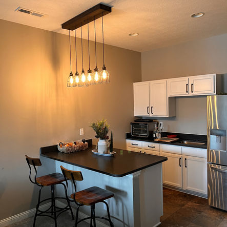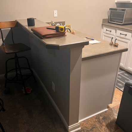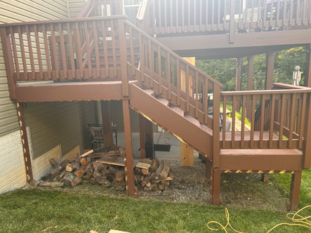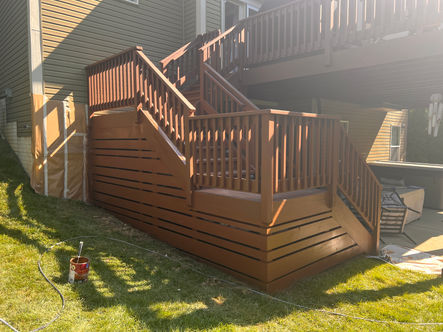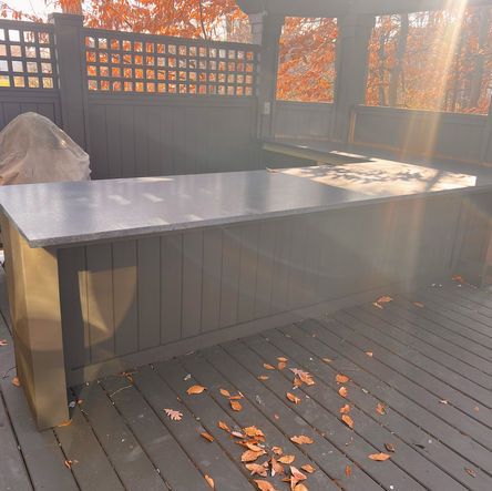 Pressure treated decking with skirting for privacy and a gate to allow for safe storage under the deck. Solid stain for protection along with a interior and exterior island remodel.
